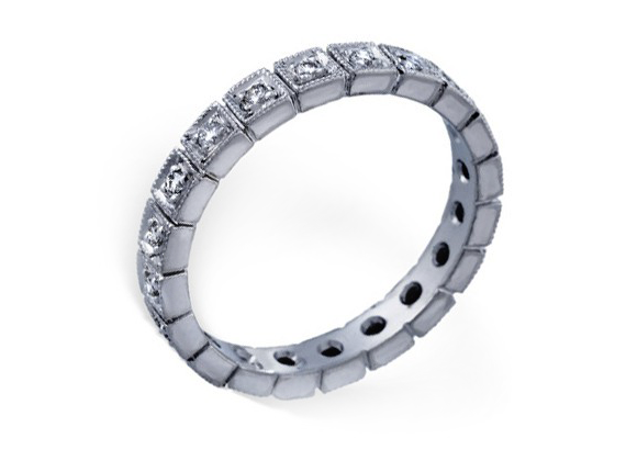 A part of the Royal Collection, the "Amanda" wedding band is traditional with an artistic flair. Fit for any up-and-coming woman who holds the crown, this hand engraved wedding band adorned with .30ct tw in diamonds revels in its ability to be simple, elegant, and unique.